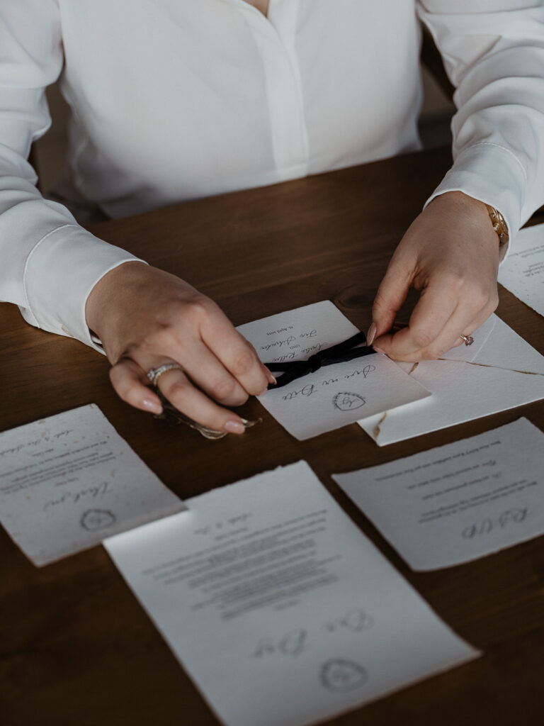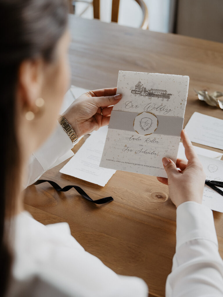 Bei mehrteiligen Papeterie-Konzepten, die bei Luxushochzeiten üblich sind, erweitert sich die Gesamtplanung auf zehn bis zwölf Monate vor der Hochzeit. Save-the-Date, Haupteinladung und Detailkarten brauchen jeweils eigene Produktionszeiten und müssen in der Timeline gestaffelt werden. Gerade wenn ein Hochzeitsplaner eure Feier koordiniert, ist diese langfristige Zeitplanung wichtig für die Gesamtabstimmung.